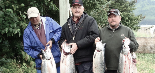 Few places in Alaska offer the diversity and abundance of salmon found around Raspberry Island. Our remote location near Kodiak gives anglers access to thriving runs of king (Chinook) and silver (Coho) salmon, both available within a short run from the lodge.